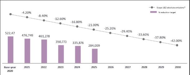 • Total gross indirect (scope 3) GHG emissions target includes SBTi emission reduction target categories. In the base year these categories represent 84% of all Scope 3. Purchased goods and services value include also upstream transportation.