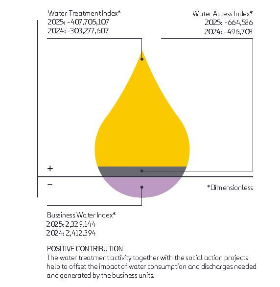 • Business Water Index (BWI): measures the negative impact produced by activities as a result of water consumption and discharges generated.