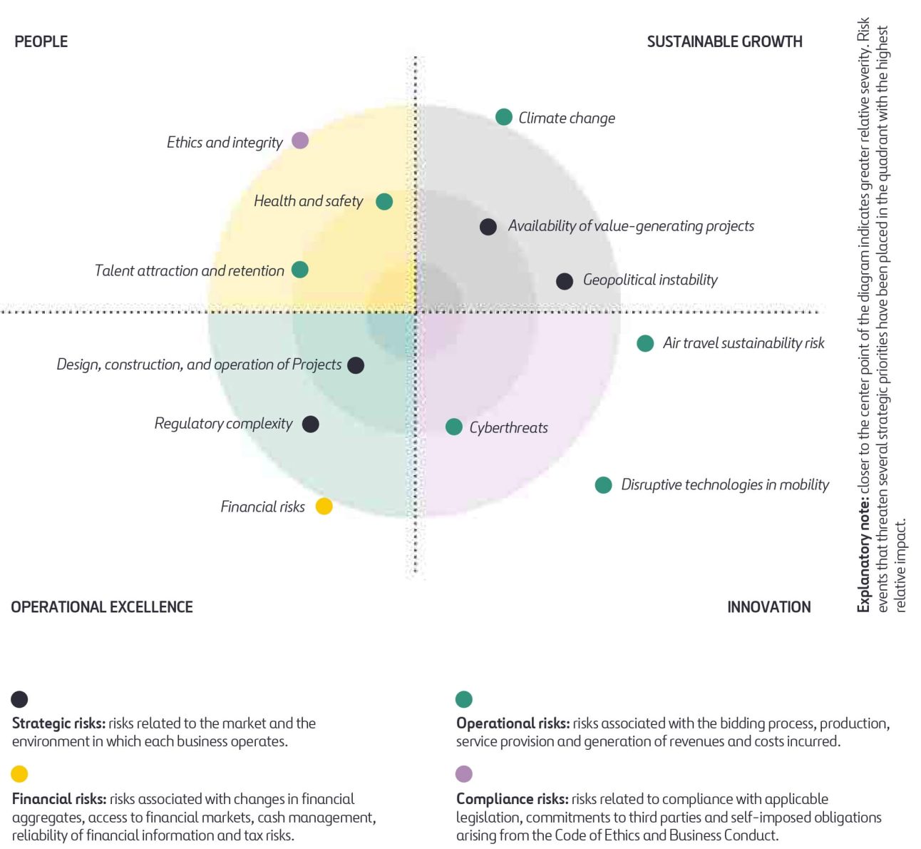 The chart shows the most relevant risk events that threaten the execution of Ferrovial’s corporate strategy.